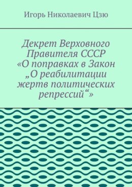 В нашей библиотеке Вы имеете возможность скачать книгу Декрет верховного правителя СССР «О поправках в Закон „О реабилитации жертв политических репрессий“» Игорь Николаевич Цзю или читать онлайн в формате epub, fb2, pdf, txt, а также можете купить бумажную книгу в интернет магазине партнеров.