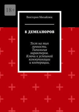 Антропоинженер презентует тест на тип личности «8 Демеаноров»: Неугомонный, Показушный, Разделенный, Взрывной, Упоротый, Неопределенный, Плаксивый и Ссыкливый. Узнайте, как эти демеаноры проявляются в жизни, их сильные и слабые стороны, и как типы личности влияют на взаимодействие с окружающими. Книга поможет вам лучше понять себя и других.