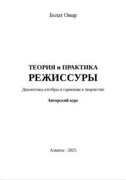 Авторский курс заслуженного деятеля Республики Казахстан Болата Омара представляет собой фундаментальное учебно-методическое пособие, объединяющее теоретические и практические основы режиссёрского искусства. Курс раскрывает диалектическое единство рационального и интуитивного начал — «алгебры» и «гармонии» — в творческом процессе театра и кино.